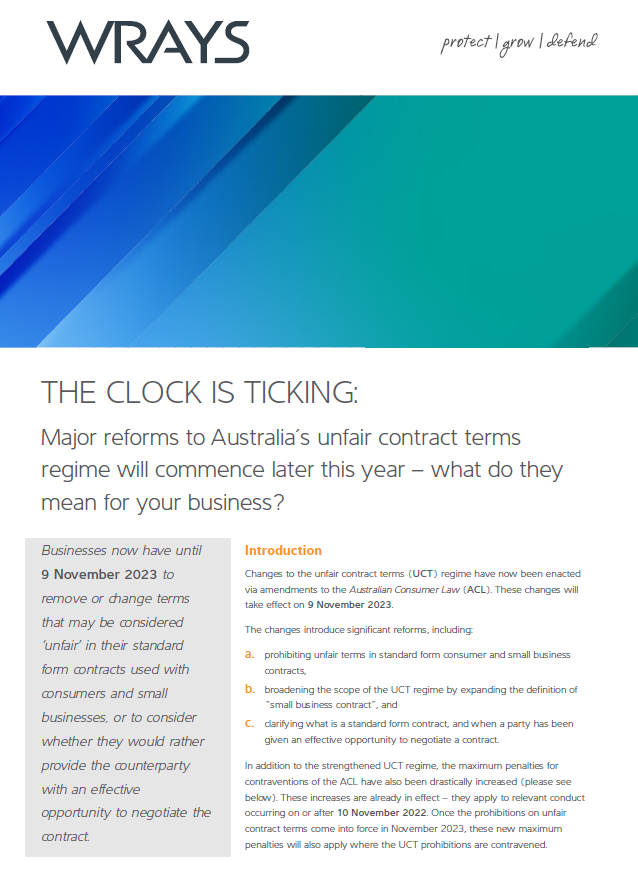 Major reforms to Australia’s unfair contract terms regime will commence later this year – what do they mean for your business?